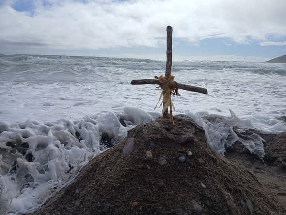 The beach labyrinths use physical objects such as beach rubbish or stones to represent visitors’ prayers, cares and worries. There is also a cross at the centre of the labyrinth. Visitors carry the object through the labyrinth and leave it at the cross when they reach the middle – a physical representation of leaving those prayers, cares and worries with God.